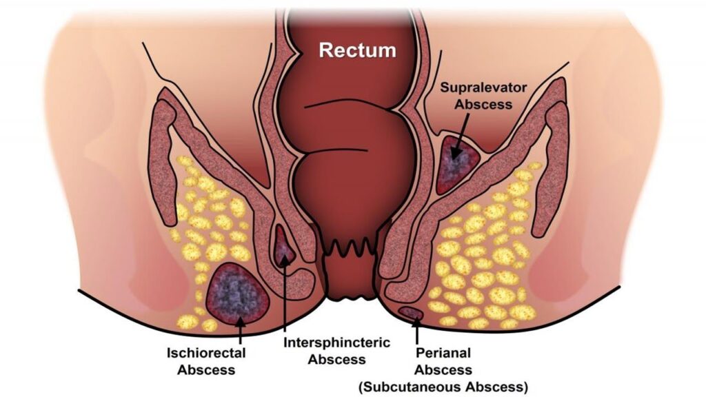 - Anusni Apscesi: Karakteriše ih nakupljanje gnoja usled infekcija.